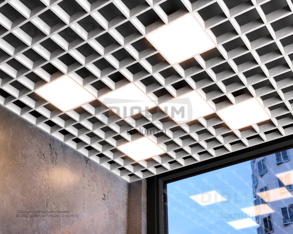 Светодиодный светильник Грильято Домино 200х200 20Вт 3000К IP20 белый